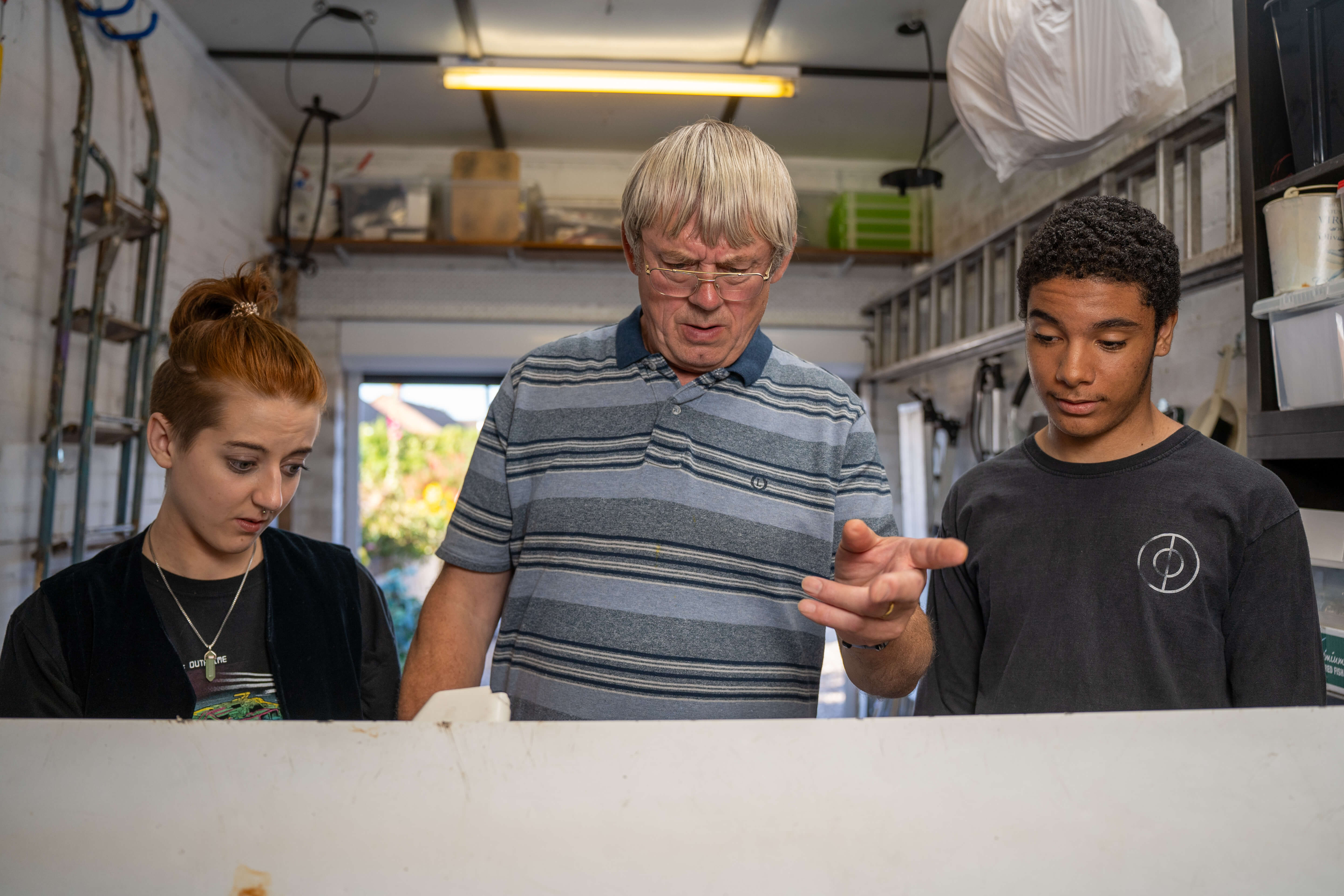 In keeping with the themes of the film, production was a learning experience for many of the crew. I teach at film school in the east of England and invited ten of my graduates to work on Chicken Town as assistants and trainees. We teamed youth with experience: production designer Simon Scullion was just back from opening a show on Broadway; make-up designer Julie Nightingale was on furlough from Gladiator 2.